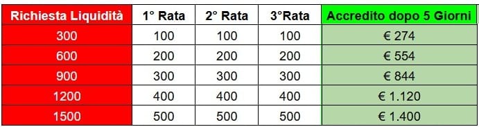 La particolarità del nostro sistema è che la prima rata serve per sbloccare l'intera somma richiesta e ti verranno accreditati solo i costi di transazione.